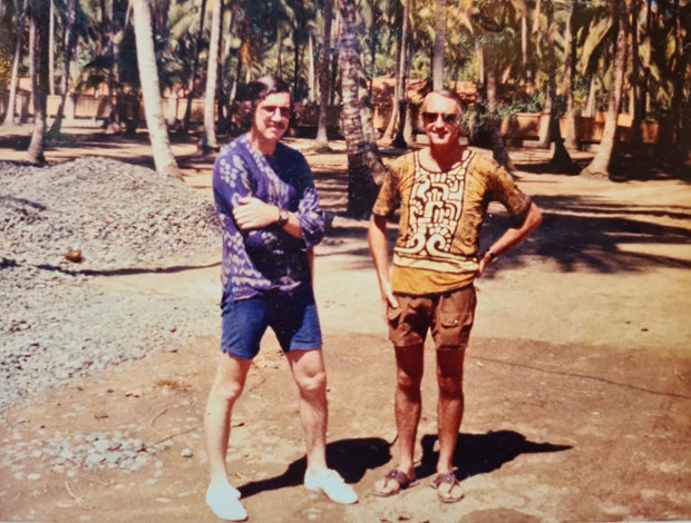 Architect Kerry Hill. remaining, with shut friend Peter Muller in Bali in the early 1970s.